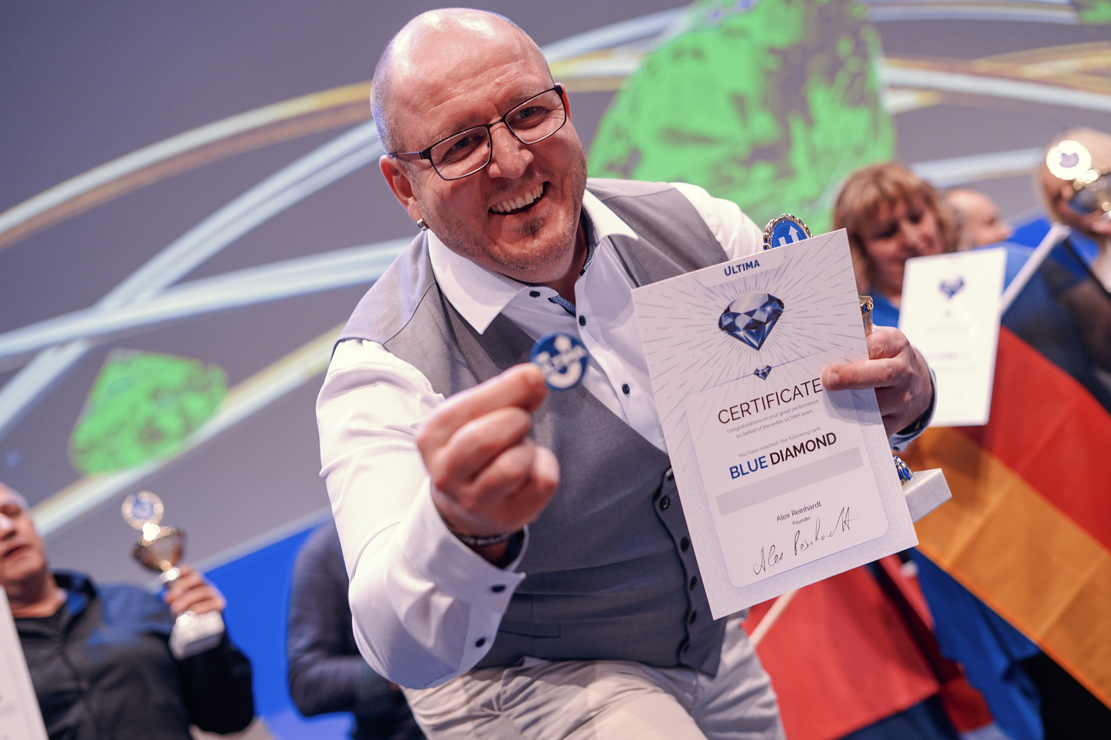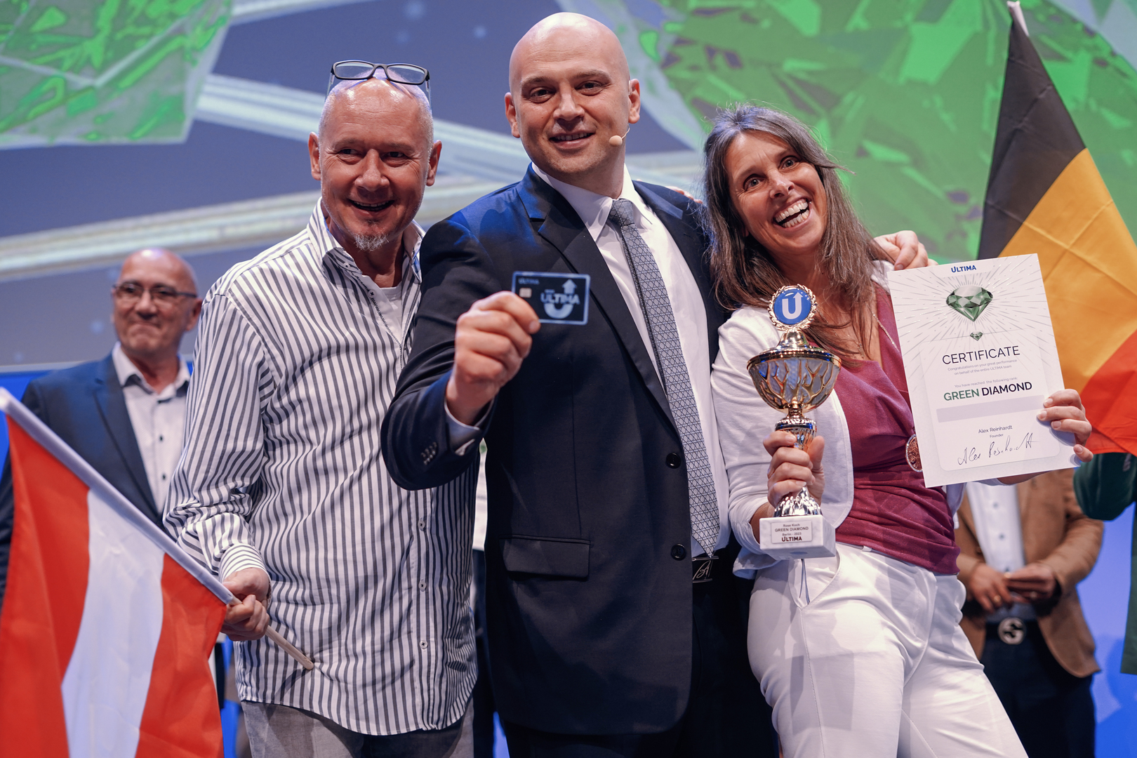 На Ultima Momentum Convention Europe фаундер Ultima Алекс Райнхардт презентовал бизнес-стратегию по работе новых продуктов и технологий экосистемы и в торжественной атмосфере представил и запустил новые уникальные сервисы экосистемы ULTIMA для реальной жизни!